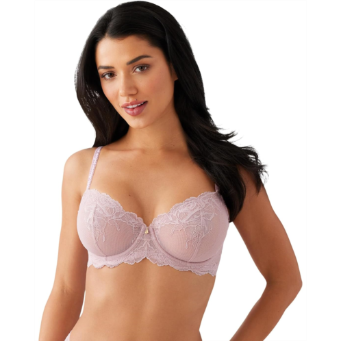 Captivate every room you enter wearing the Wacoal Vivid Attraction Underwire Bra. Crafted with intricate lace in a sultry floral pattern, this bra is a stunning blend of beauty and support. It has seamed lace cups with net lining for sheer, alluring style, and the side sling provides added support and shaping.