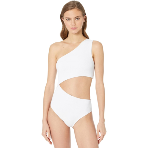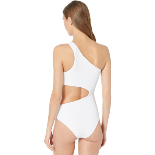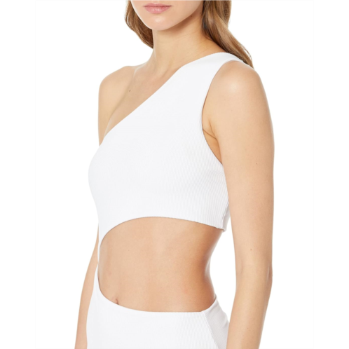 Asymmetrical one-shoulder neckline with side cut-outs detail on the waist.