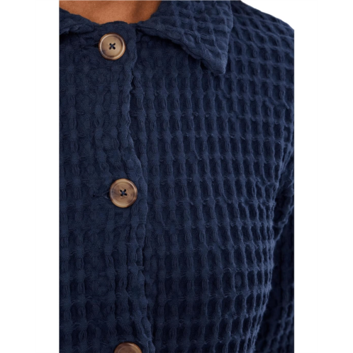 Embrace cozy and chic vibes wearing the Mod-o-doc Long Sleeve Waffle Swing Jacket. The jacket with waffle texture features a collared neck, a full button-front closure, long sleeves, and a straight hem.