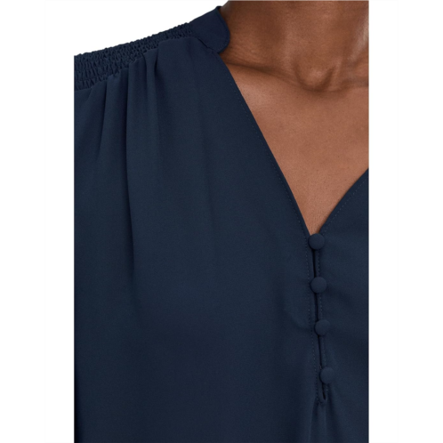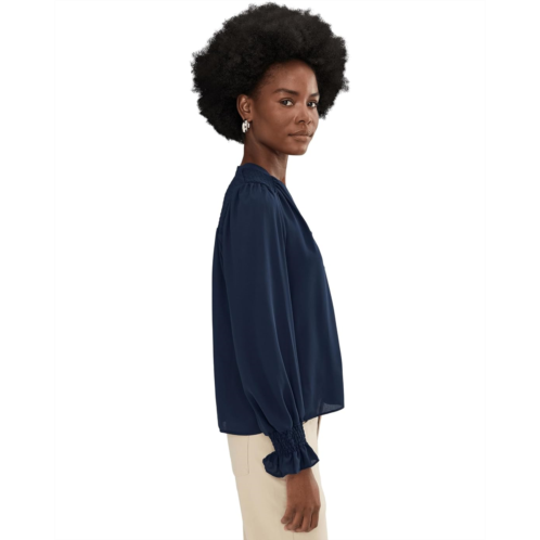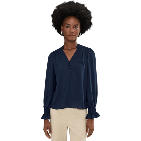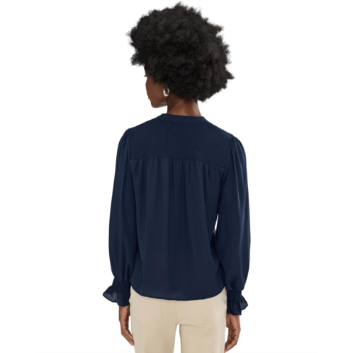 [US] CeCe Long Sleeve Half Placket Smocked Top