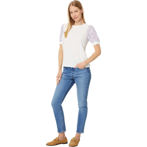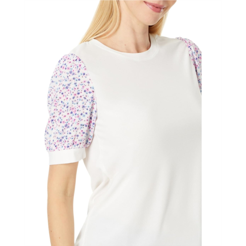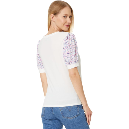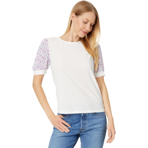 [US] CeCe Crew Neck Mixed Media Short Sleeve Top