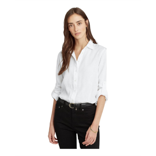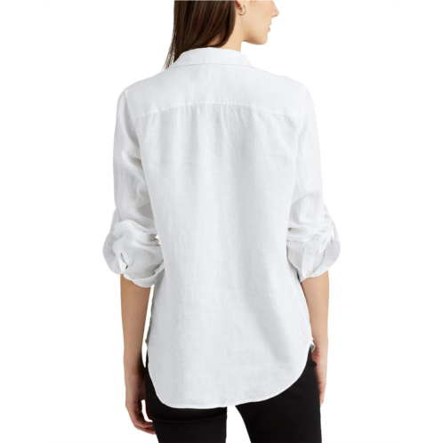 Light-as-air linen makes this shirt, designed with long roll-tab sleeves, a must-have for the season. Featuring a point collar, a buttoned placket with 'LAUREN Ralph Lauren'-engraved buttons, long roll-tab sleeved with buttoned barrel cuffs, and pleating at the cuffs. An effortless refresh to your everyday style!