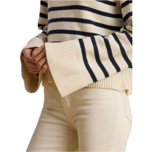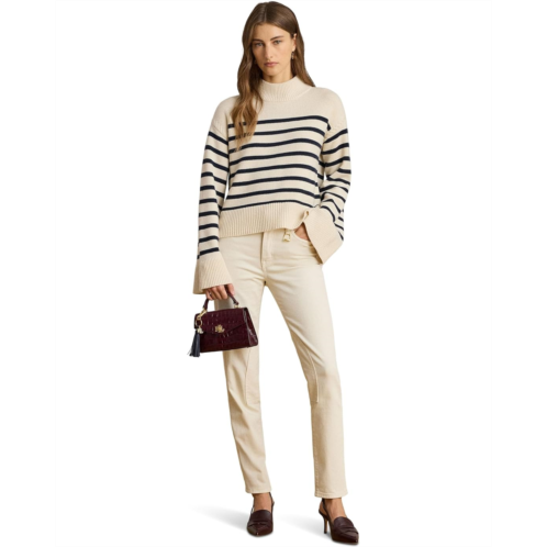 The LAUREN Ralph Lauren Striped Wool-Blend Mockneck Sweater features a knit with a soft blend that includes wool and cotton. This relaxed-fitting mockneck sweater features classic stripes and subtle bell sleeves with cable-knit detailing at the seams.