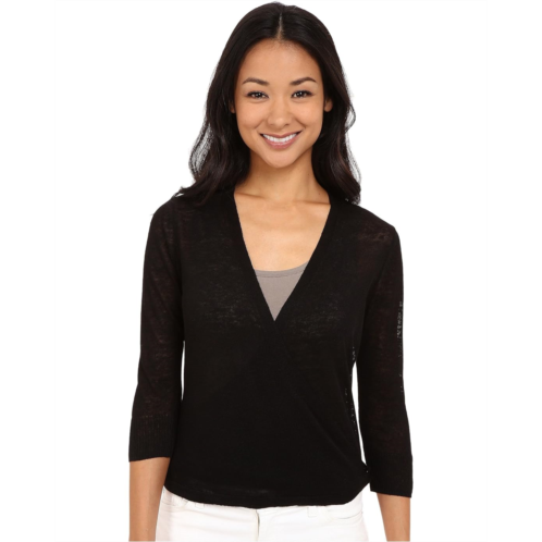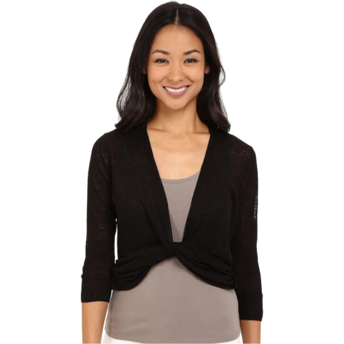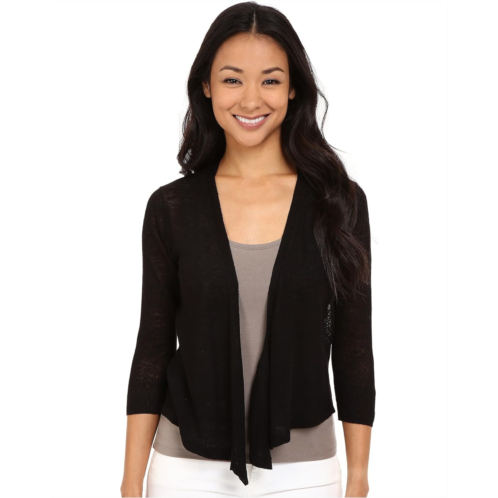 Solid three-quarter sleeve cardigan in a lightweight and soft knit blend.