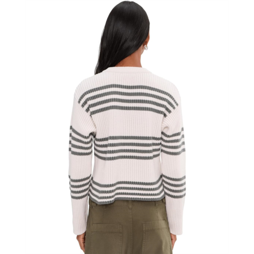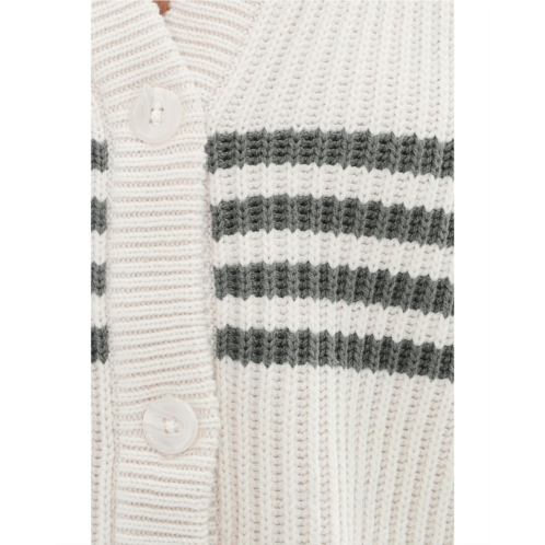 Effortlessly cool with a hint of alpine charm, the Splendid Alexandra Stripe Cardigan feels like an apres-ski moment captured in time. Cream and deep olive stripes lend a classic, heritage feel, while the relaxed collar and V-neckline create an easy, lived-in elegance. Designed with a softly slouched silhouette, full button-front closure, long sleeves, and cozy ribbed trims, it's the kind of sweater you reach for on crisp mornings and linger in long after sunset. Pair it with tailored trousers or worn-in denim for a look that feels relaxed, confident, and quietly refined.