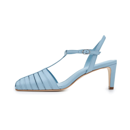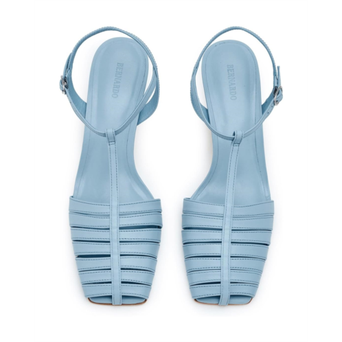 Be square, be chic. The Bernardo Peoria T-strap heeled sandal encases your toes in style with a pristine strappy forepart in chic fisherman fashion. Peoria's modern square toe and slim mid heel form the perfect transitional pump for work, play, and any occasion.