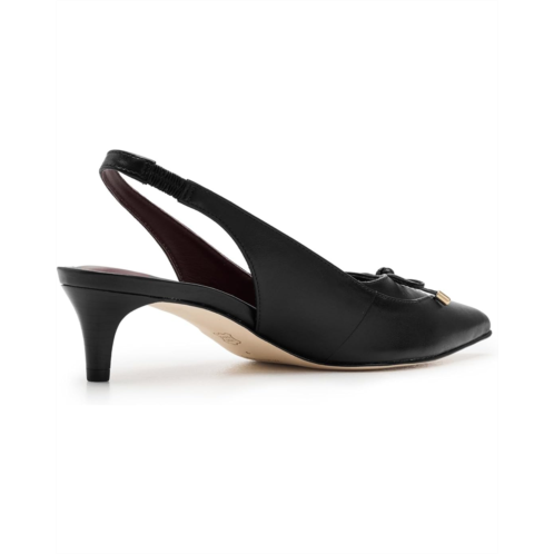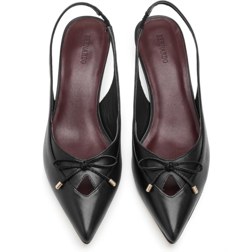 Bow no peep. The Bernardo Misha slingback pumps feature a delicate leather bow detail centering a conservative cutout. They are made of a leather upper, insole, and lining. Their slingback strap offers added support. To complete these tailored pumps, they are set upon classic stacked kitten heels for a staple that takes you from board to board, meetings to after-work charcuterie.