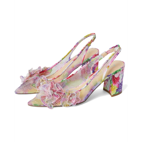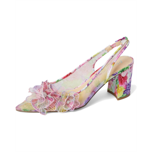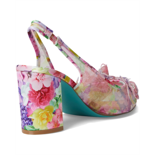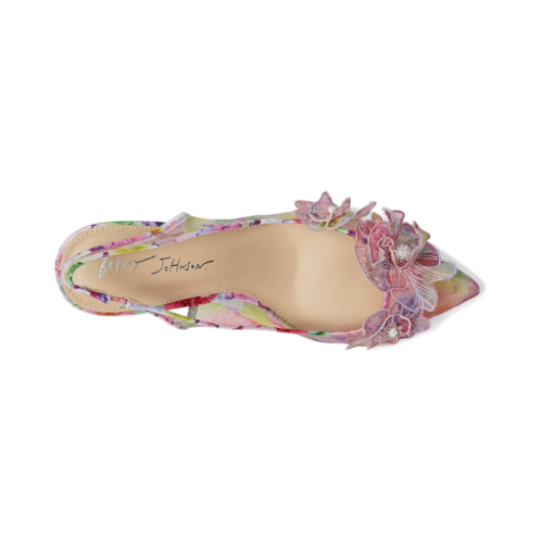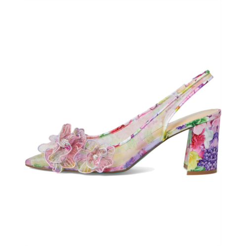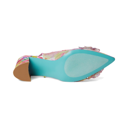 Be stylish by wearing the Blue by Betsey Johnson Petra, where every step is a dance of elegance. These shoes boast a pointed toe pump with a chic slingback strap, offering slip-on ease. The synthetic lining ensures comfort, while the oversized floral motif and handcrafted flowers on the front elevate your style effortlessly.