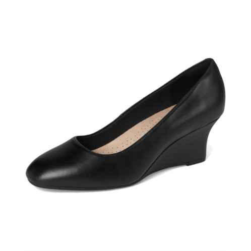 Heighten Your style wearing the Clarks Olivette Pearl. Crafted from leather upper, mesh lining, and leather insole, it features round toe, slip-on silhouette, and wedge heels.