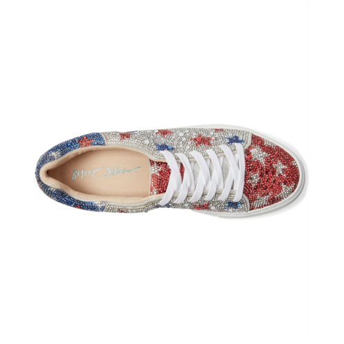 The Blue by Betsey Johnson Sidny sneaker will lend a dose of glam to your casual days with a rhinestone-encrusted fabric upper, low-profile silhouette, padded collar, and a round toe.