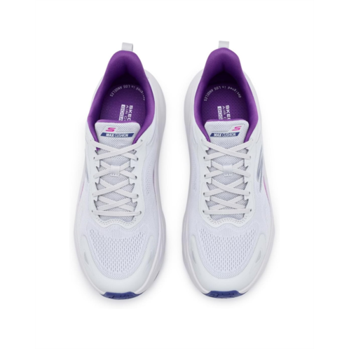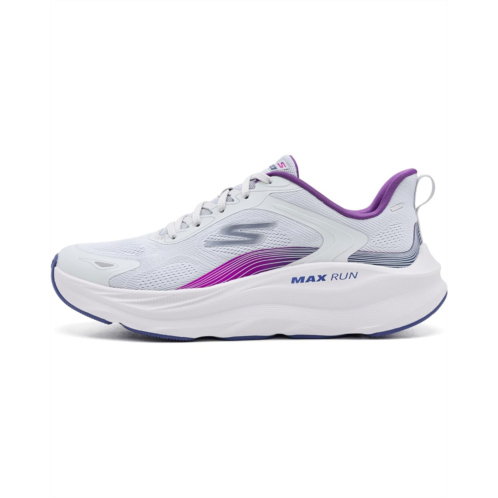 The SKECHERS Max Run Pacewave features a breathable engineered mesh upper, hotmelt support details, and Max Cushioning design for ultimate comfort. It has an Ultra Light cushioned midsole, an Air Cooled Goga Mat high-rebound comfort insole, and a durable Goodyear rubber outsole.