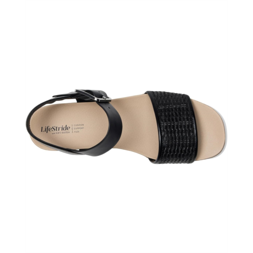Elevate every look in these sleek and modern LifeStride Gillian2 women's sandals with a crochet-inspired woven detail. Perfect for dressing up or down. Platform sandals for women are designed with faux leather straps upper, open square toe design, an instep strap with adjustable buckle closure, crochet-inspired detail at the front strap, and a lightweight and flexible design. Trusted Soft System comfort technology for unmatched cushion, support, and flexibility in every pair.