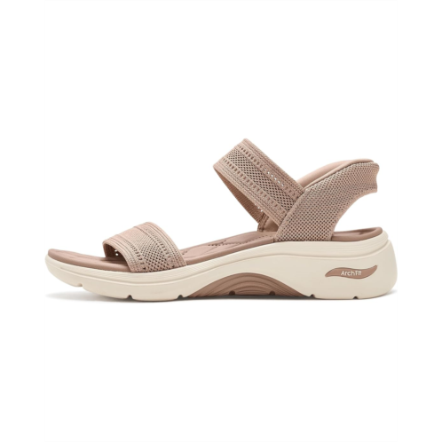 Skip the fuss and step right into the SKECHERS GO Walk Arch Fit 2.0 Sandals. Designed with a flexible spandex upper featuring subtle shiny yarn detail, this sandal delivers a modern look with a soft, stretchy feel. The easy slip-on design makes on-the-go moments seamless, while the polyester lining enhances breathability for all-day freshness. Powered by a quilted Goga Mat footbed and responsive ULTRA GO cushioning, every step feels light and energized. The EVA insole and outsole work together to provide shock absorption and durability, while Comfort Pillar Technology adds extra stability and support. The supportive wedge heel gives you a subtle lift without compromising comfort. Plus, with the APMA Seal of Acceptance and a machine-washable design, this Arch Fit sandal blends wellness, convenience, and everyday glam perfectly.
