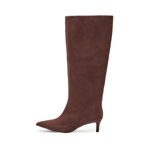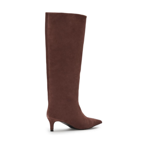 Simple yet chic, the timeless Free People Kiki Kitten Heel Boots feature buttery soft leather upper and a bold pointed toe with a minimal kitten heel and easy pull-on style. The knee-high boots come with a leather lining, leather insole, and rubber outsole. The shaft of these boots can also be worn slouched for a unique look.