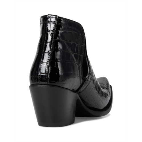 Pull-on Western bootie with deep V-panel cut-out sides for easy on and off.