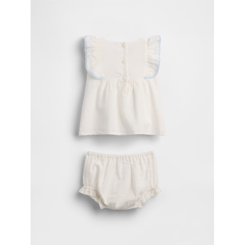 - Soft cotton clip-dot knit top and bloomers outfit set.