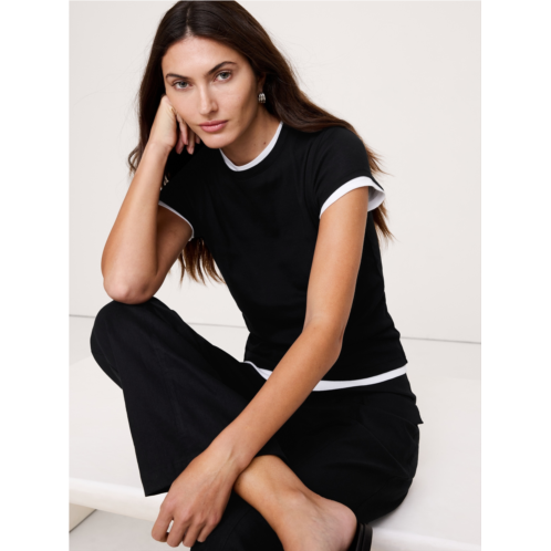 - Luxurious and a little slinky, this tee is cut from two layers of our airy cottona favorite for its a super-subtle ribbed knit texture which gives it body-hugging stretch in lightweight, 100% cotton (so it's perfect for all seasons).