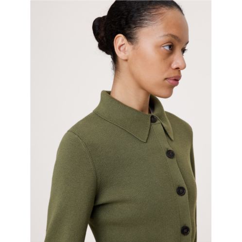 - An on-trend polo cardigan, cut in an above-hip length so you can layer it or wear on its own. Crafted from our softest blend of cotton and silk.