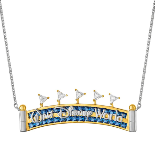 Bring the joy and excitement of Walt Disney World wherever you go wearing this pendant necklace from Rebecca Hook. Crafted in sterling silver and plated in 18k gold, the marquee-inspired design features dazzling cubic zirconia and blue nano crystal stones. Add a subtle shimmer to your park outfit or gift this must-have accessory to those who want a little piece of The Most Magical Place on Earth.