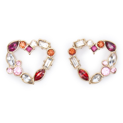 Keep Mickey Mouse close wherever you go. Faceted glass stones in shades of pink create these heart-shaped earrings with a ''hidden'' Mickey icon.