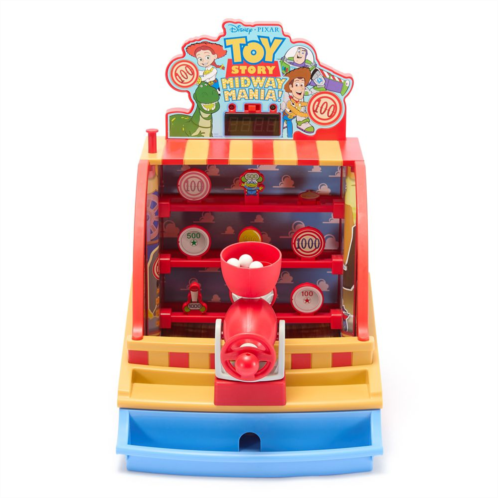 Hey, howdy hey! Direct from Disney California Adventure comes theToy Story Midway Mania!Game, an old-fashioned carnival style shooting gallery with a modern twist. Pull the cannon's cord to shoot balls at the flip targets. The electronic scoreboard tracks the points, while a button resets the targets for another round. Single and two-player modes keep the whole gang in the game!