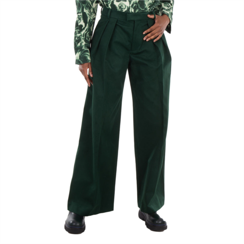 Burberry Ladies Bottoms. Fashion category - Pants & Leggings. SKU - 8083693. Color - Ivy. Burberry Wide Leg Pleated-Detail Cotton Trousers. This cotton trouser features pleat detailing, a concealed front fastening, belt loops, and a wide-leg design. 100% Cotton. Made in Portugal.