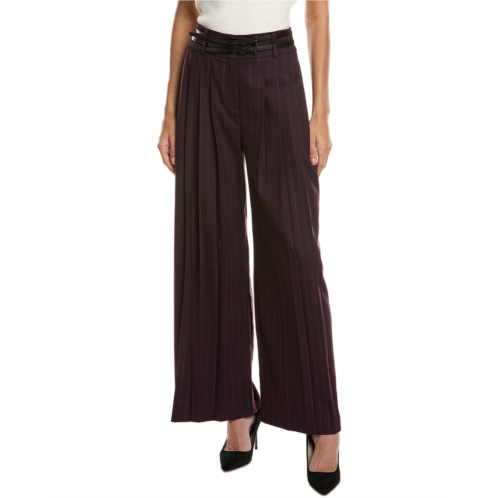 Elevate your casual chic style with the Kenneth Cole Pleated Wide Leg Pant. Featuring a deep maroon color, these pants have a belted waist and four-pocket styling for a sophisticated look. The inseam is approximately 30.5 inches with a 12.5-inch rise, making them the perfect addition to your wardrobe. The zip fly with hook-and-eye closure adds a touch of elegance to these pants. Made from 65% polyester, 33% viscose, and 2% elastane, these pants are dry clean only. Imported and worn by a model who is 5'10 and wearing a size 2, these pants are a must-have for any fashion-forward woman. Measurements may vary slightly by size.