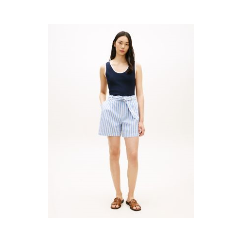 [US] TOMMY HILFIGER Belted Striped Linen-Blend Short