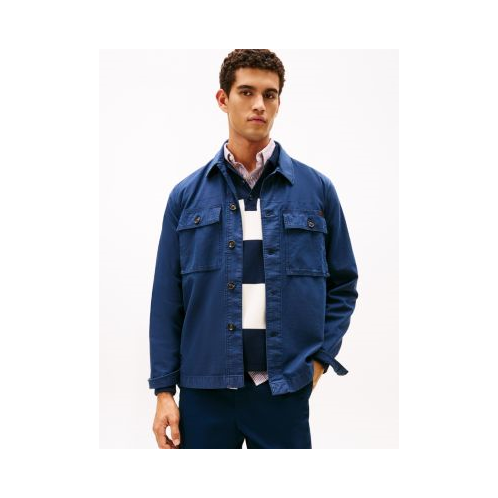 Tommy Hilfiger men's jacket. Our versatile utility shirt jacket is a casual wardrobe hero. Made from garment-dyed sateen slub cotton, this durable style offers a lived-in look with a smooth, soft feel.
