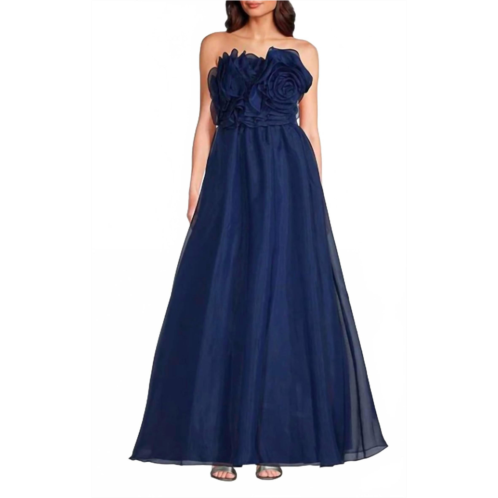 [US] Adrianna Papell strapless organza strapless rosette ruffle ball gown in navy