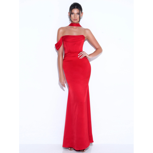 [US] Miss Circle women ivona red halter neck double duchess satin gown