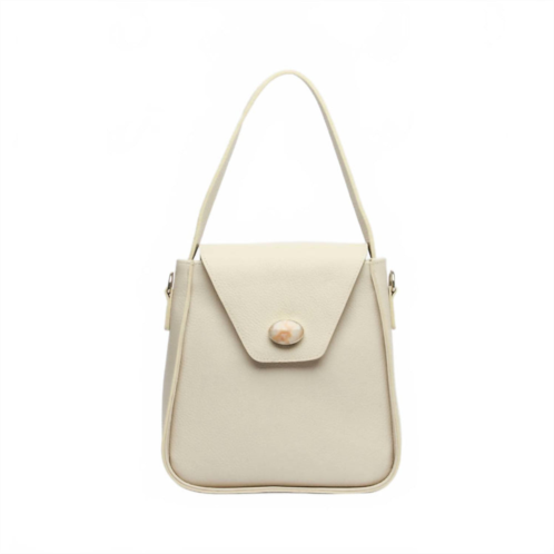 Introducing the Women's Alexander Shoulder Bag by Florez in a sophisticated Ivory shade. This shoulder bag is crafted from premium leather and features a unique onyx stone flap, each piece exclusive due to its natural origins in Argentina. With a detachable and adjustable strap, this versatile piece is perfect for any occasion. Dimensions - 26 cm (10.2 inches) height, 24 cm (9.4 inches) length, 10 cm (3.9 inches) depth, weighing 0.74 kg (1.63 lbs).