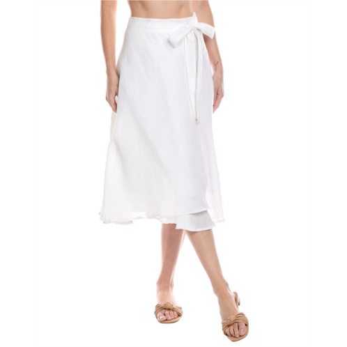 Introducing the Vitamin A Lana Linen Skirt, a chic addition to your summer wardrobe. This stylish skirt is perfect for any occasion, featuring a self-tie wrap closure for a customizable fit. Made from 100% linen, this skirt is not only fashionable but also comfortable for all-day wear. The white color and flattering silhouette make it a versatile piece that can be dressed up or down. Pair it with your favorite top and sandals for a trendy look. Hand wash recommended. Imported. Model is 5'9 and is wearing a size small, measurements may vary slightly by size.