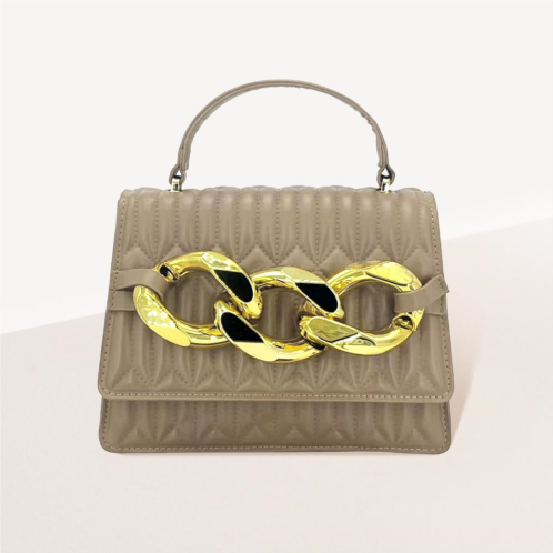 [US] FASHNZFAB chunky metal trim accented faux leather top handle crossbody bag