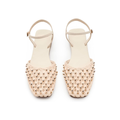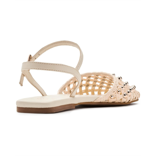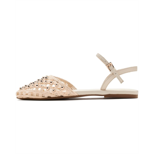 - The Inali Strappy Ballet Flats from Franco Sarto combine modern elegance with everyday comfort. Designed with woven upper accented by polished studs, these flats offer a stylish texture and subtle shine. The ankle strap with buckle closure ensures a secure and adjustable fit.
