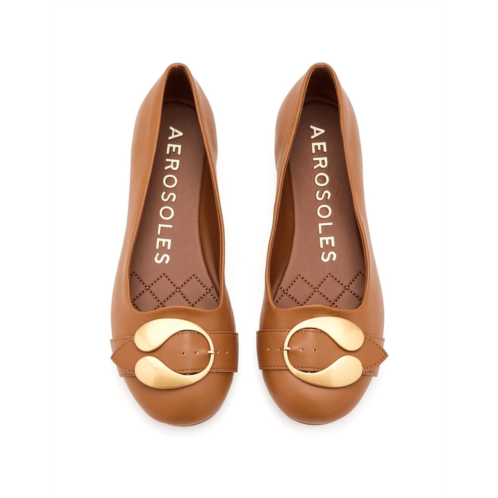 - The new standard for the daily commute: The Aerosoles Paradise ballet flat. Designed with a smooth faux leather upper, this flat delivers a luxe look without compromising on comfort. The polished round toe and streamlined silhouette create a timeless profile that pairs seamlessly with everything from tailored workwear to relaxed weekend denim. An oversized matte gold buckle adds just the right amount of statement shine, elevating your look from day to night with effortless sophistication. The soft polyurethane lining ensures a comfortable feel against your skin, while the rubber insole cushions every step for lasting support. A subtle block heel offers a gentle lift for enhanced stability, and the durable polyurethane outsole keeps your stride confident and secure.