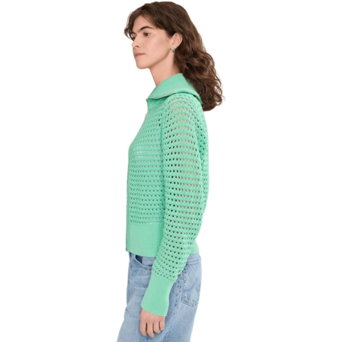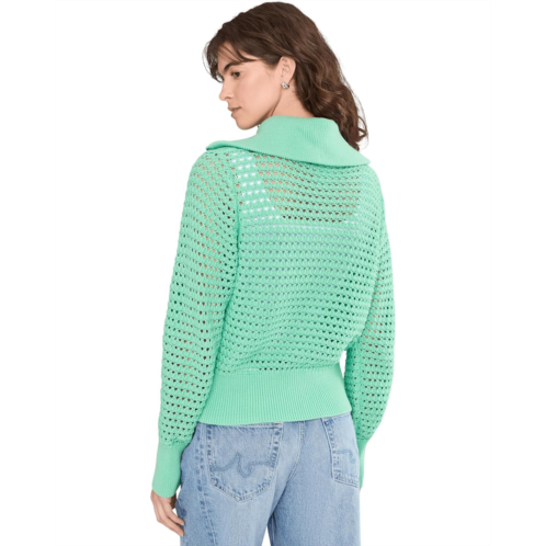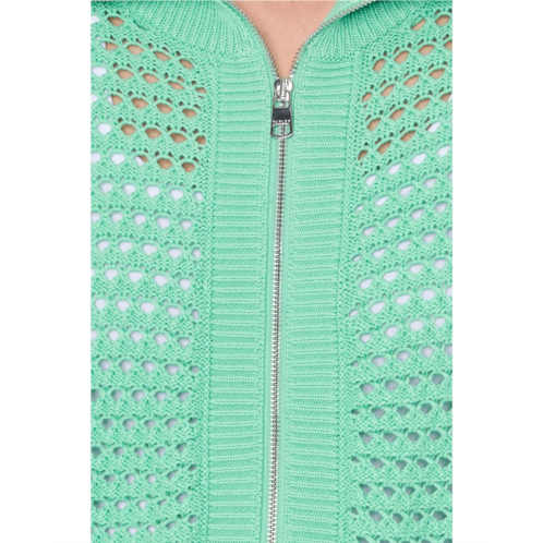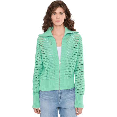 - Indulge in the plushness and warmth of this luxurious Varley Eloise Full Zip Knit sweatshirt that embraces you in a cloud of coziness. This front zippered cardigan features open stitching, a platter collar, full-length silvertone zipper, and long sleeves with ribbed knit cuffs.