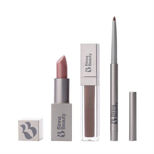 The Rinna Beauty Icon Lip Kit - Sasha - includes everything you need for a complete lip look, Including Dirty Talk Lipstick, Shake It Lip Gloss, & After Party Lip Liner.The Lipstick, lip gloss, and lip liner formulas are made with a hydrading formula and ingredients that nourish and perfectly tint your lips.This lip kit is formulated with Anti-Aging, Moisturizing Formulas, for lips that want to stand out and be noticed. Create your ideal lip look!Clean beauty products, No Sulfates, Parabens, Phthalates or Gluten. Fragrance and Flavor Free. Vegan and Cruelty free.