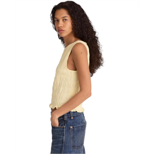 - Stay stylish in the sleek appeal of the Madewell Sachi Smocked Tank top fashioned in standard length with a smocked texture. The top features a slim fit with a high neckline and a classic sleeveless cut.