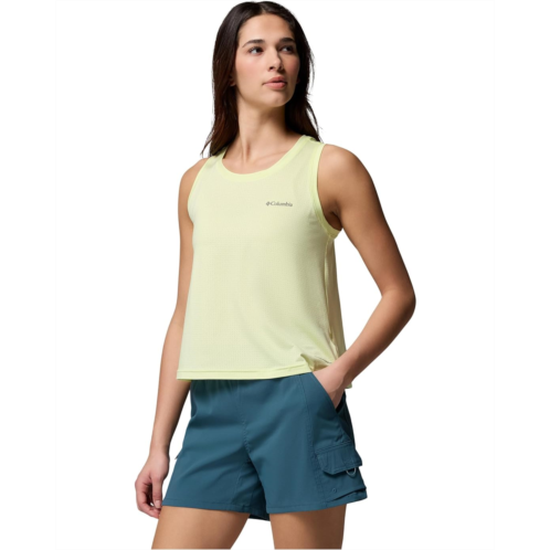- Get ready for your next outdoor adventure choosing the Columbia Wild Springs Tank. Featuring Omni-Shade UPF 40 protection, this tank will keep you safe from the sun's rays. The crew neckline and short sleeves offer a classic look, while the straight hem adds a modern touch. Thanks to Omni-Freeze Zero technology, you'll stay cool and dry with sweat-activated blue rings that efficiently absorb moisture and promote evaporation.