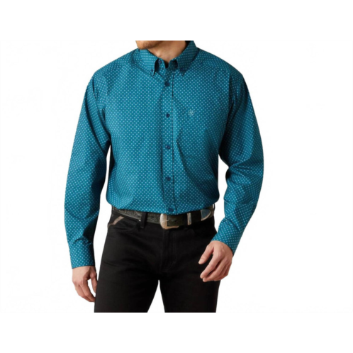 Introduce a touch of Western flair to your wardrobe with the Ariat Tyce Classic Fit Shirt in Dark Teal. Crafted from 100% Cotton, this shirt features long sleeves and a stylish collar, perfectly suited for the Fall season and Thanksgiving gatherings. It boasts a patterned design and functional pockets, adding practical elegance to your look. Closure - Button closure.