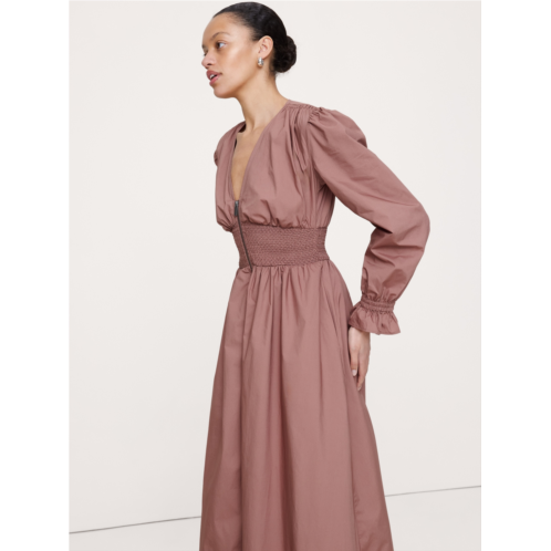 [US] Bananarepublic Cotton Poplin Smocked-Waist Maxi Dress