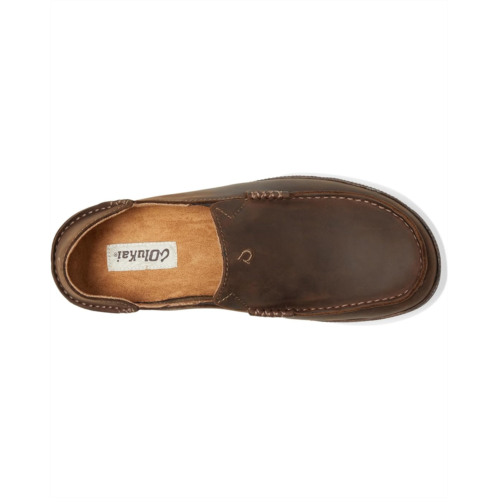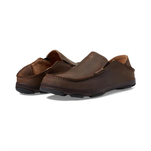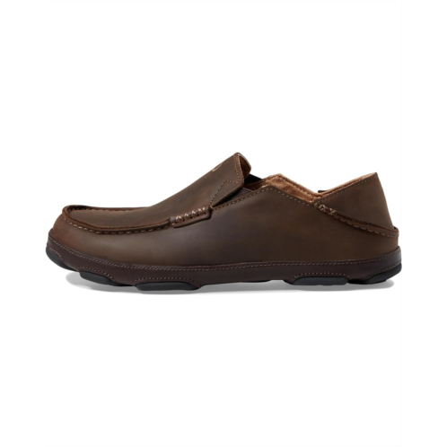 - The OluKai Moloa will have you steppin' with the carefree island style for those lazy days under the sun. Constructed from a full-grain leather upper with hand-sewn stitching, these shoes feature embossed 'crest' detailing on the vamp with a microfiber suede lining and a rigid cellulose fiber insert for stability.