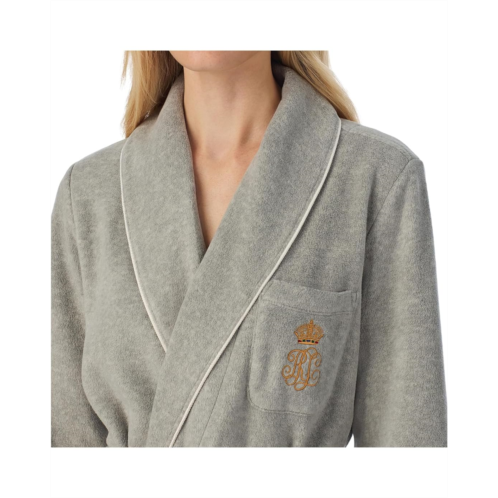 The LAUREN Ralph Lauren Recycled Polyester Dalton Fleece Robe is a cozy loungewear that blends plush comfort with refined detailing. It features a shawl collar for added warmth and elegance, along with a self-tie belt for a customizable fit. Two front patch pockets enhance both style and functionality.