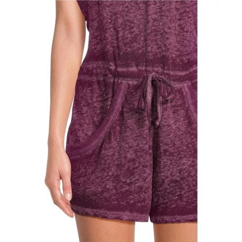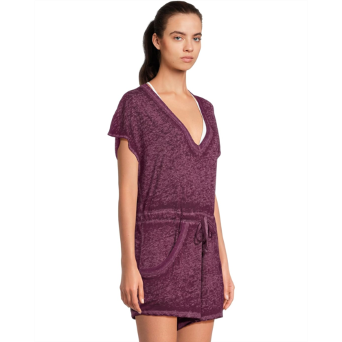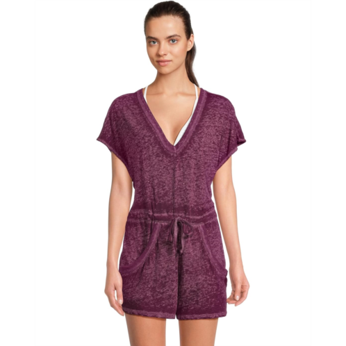 Becca Beach Date V Neck Romper Cover-Up with side seam pocket and rib trim detail in a soft slub burn out knit fabric.