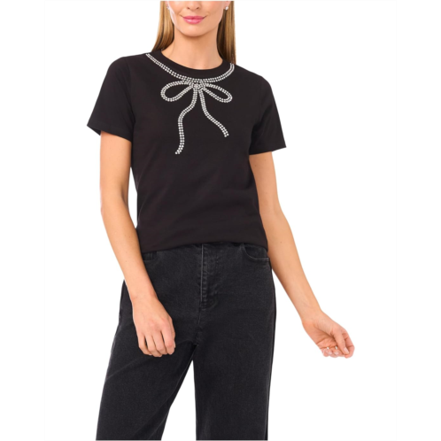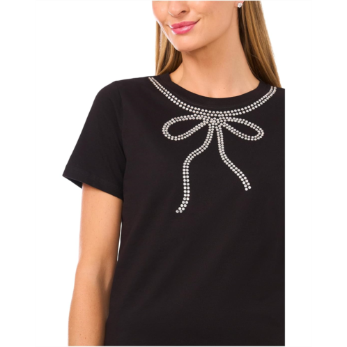 Shine bright, stay chic, and let your everyday style sparkle wearing the CeCe Bow Gem Trim T-Shirt. Designed in a flattering classic fit with short sleeves and a timeless crew neck, this pull-on tee is the perfect mix of comfort and elegance. The delicate gem embellishments highlight a charming bow detail, adding just the right touch of shimmer to your casual wardrobe. Crafted from soft, breathable fabric, it feels as good as it looks, keeping you comfortable all day long.