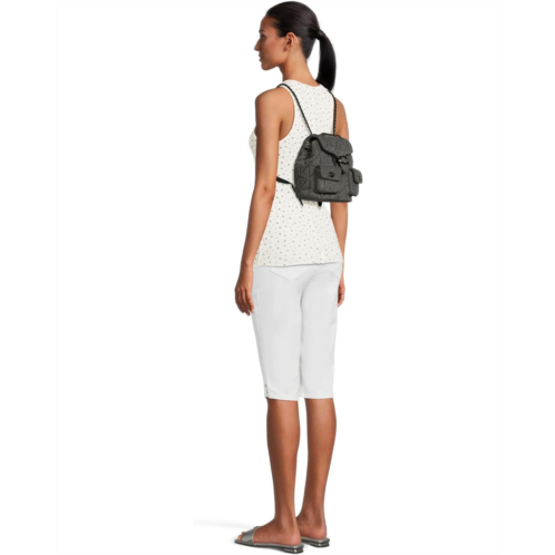 - Meet the COACH Tabby Backpack with Quilting, your all-time companion for outdoor ventures. Featuring allover quilting construction, this backpack is designed with an interior slip pocket for easy organization. The drawstring and snap closures ensure your belongings are secure. The chain strap with 19' drop offers a fashionable look, complemented by outside turnlock pockets for additional storage. Adjustable shoulder straps provide a comfortable fit, making this backpack both versatile and trendy.