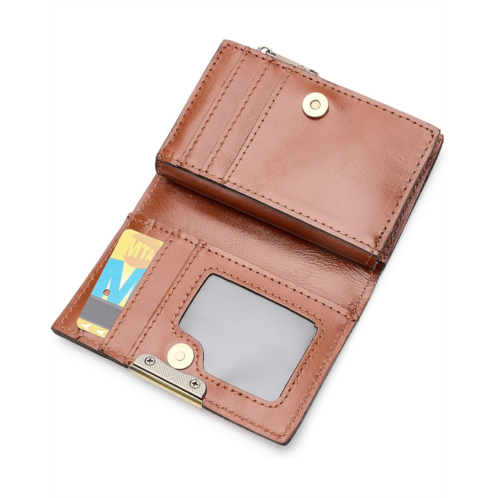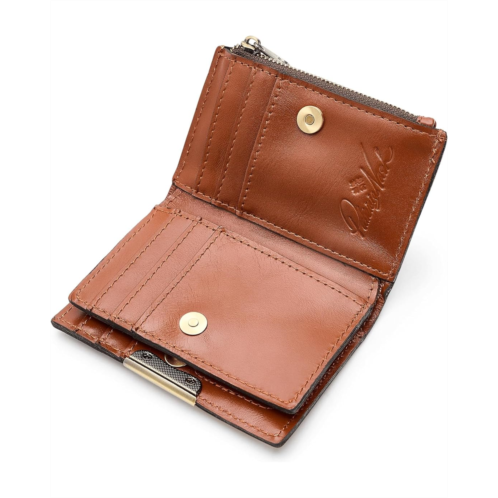 - The Patricia Nash Busalla Wallet keeps your cards organized and easily accessible with several dedicated slots for your credit cards, an ID window, bills, and receipts. Ingeniously designed, it features an interior flip panel with added card slots. Crafted in full-grain leather, the Busalia's patina gets lovelier over time, whether you toss it into a bag or carry it on its own. Featuring magnetic snap closure, signature brushed brass exterior hardware, heavy handcrafted stitching, burned-edge finish, one zippered pocket, one interior zippered pocket, and two slip pockets.