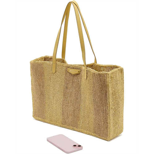 - Laid-back but far from basic, this Rebecca Minkoff Large Tote brings texture and attitude together in one effortless carryall. Bold striped detailing gives it a cool, lived-in feel, while sturdy top handles keep it ready for whatever the day throws your way. Made from a blend of nylon and polyurethane (PU), this woven tote has a spacious interior compartment that can accommodate all your essentials. The magnetic closure offers easy access. Roomy, lightweight, and easy to grab and go, this tote bag is the kind of bag that works just as well for off-duty days as it does for last-minute plans.