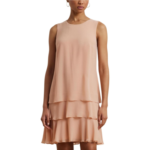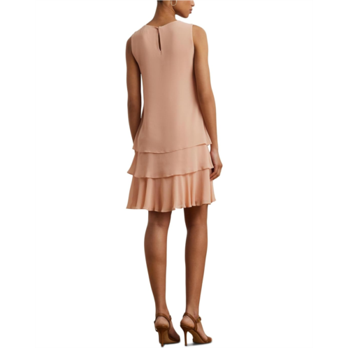 Drawing inspiration from iconic '20s designs, the Lauren Ralph Lauren Georgette Shift Dress unites a sleeveless silhouette with a ruffle-trimmed tiered skirt, which sways gracefully with each step thanks to its airy Georgette fabrication. Its shift silhouette offers a flattering fit. Fully lined for added coverage, this mini dress is styled with a round neckline, tiered hem, and a keyhole at the center back with a hook-and-eye closure.